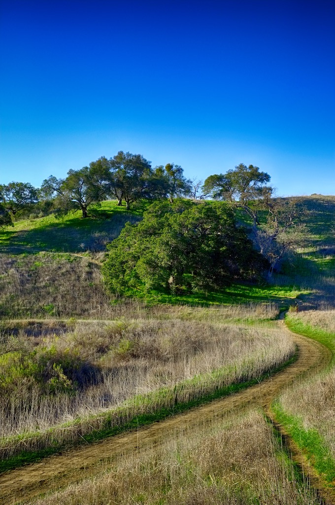 I can remember being on this fire road only a few weeks earlier. The short season grasses were as green as rye and flooded onto the fire road itself. By late February, when this photo was taken, those grasses were already well into retreat. At least the oak leaves bring a little green to the scene.